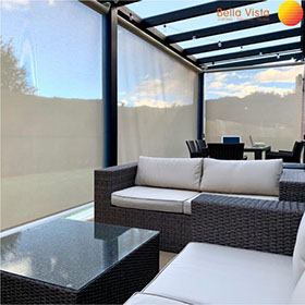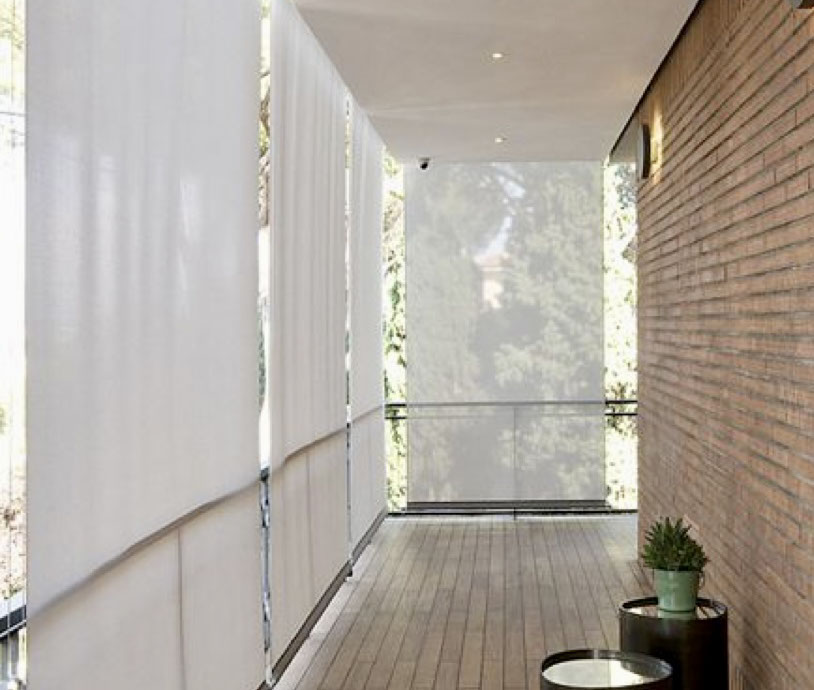 Los tejidos de nuestros toldos verticales bloquean el calor presente en la radiación solar. Filtran la luz según la apertura del tejido ofreciendo visibilidad.