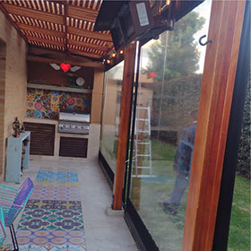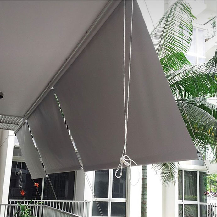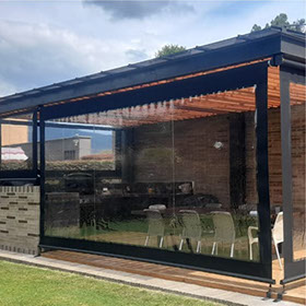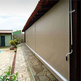 Los ofrecemos con un sistema guiado a través de guayas laterales que permiten enrollar y desenrollar el toldo a conveniencia o con anclajes al piso.